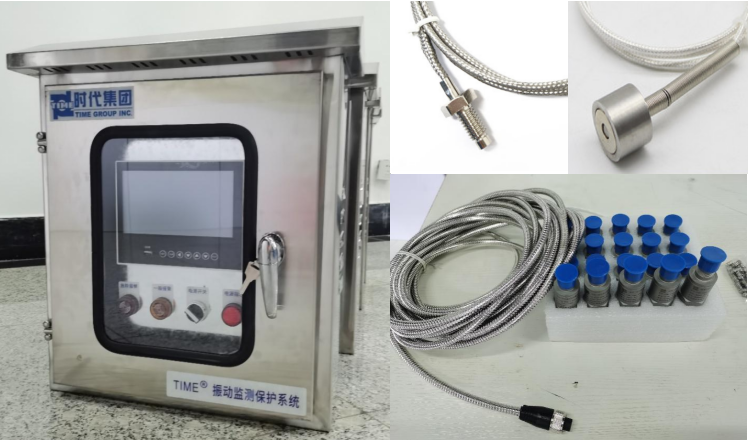 TIME 7218振動監測保護系統由人機界面(觸摸屏)、振動傳感器、溫度傳感器、電控箱等部分組成,主要用于對分旋轉機械的振動烈度進行長期監測,該系統能夠實時測量被測位置的振動速度值有效值和表面溫度,并在人機界面上同時直觀顯示;同時具有標準的電流輸出,可與各種DCS 、 PLC 系統配接;并可以進行一般報警、危險報警兩級報警輸出設置,當振動值或溫度值超限時,通過柜體蜂鳴器或外接聲光報警器以提示現場操作人員采取防范措施,保護機器安全可靠運行。
