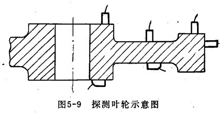 (二)盤類鍛件的探傷 盤類鍛件(如汽輪機(jī)葉輪)是在高溫、高壓、高速下工作的,不允許存在白點(diǎn)、裂紋等缺陷。需探測(cè)的葉輪表面光潔度不應(yīng)低于?6,超聲波探傷儀探測(cè)部位應(yīng)以缺陷集中且承受應(yīng)力最大的輪殼為主。葉輪中的缺陷多垂直于鍛壓方向,故應(yīng)以鍛壓方向垂直的端面作為主要探測(cè)面。探測(cè)時(shí),以直探頭為主。直探頭探測(cè)能有效的發(fā)現(xiàn)平行于探測(cè)面的缺陷。同時(shí),可用斜探頭(或直探頭在葉輪外圓周上)探測(cè)與葉輪端面垂直或傾斜的缺陷,如下圖所示。