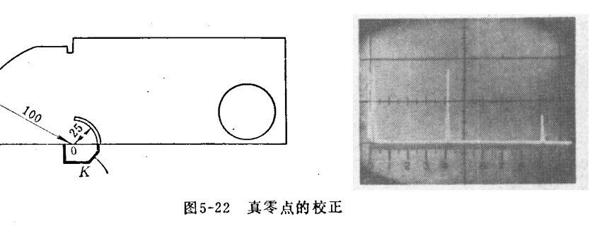 九、斜探頭真零點的校正 斜探頭聲波經過有機玻璃延遲一段時間后,射入工件,這一段時間需在熒光屏零點刻度上予以校正。如下圖示,探頭在K處移動,直到獲得從100毫米弧度反射回的波幅最高為止,然后調整掃描線的“水平位移”及“細調”,使兩個反射波出現在40°及90°處為止。刻度40°的波系從100毫米處直接反射回探頭的波(路徑200毫米),而90°處的波系由100毫米處及25毫米槽處往復反射回至探頭的波(路徑450毫米)。此時,熒光屏的零點刻度即為聲波離開斜探頭有機玻璃楔塊時的零點。