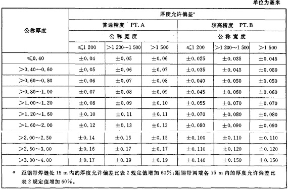 2.厚度允許誤差(滿足下表)
