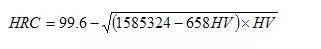 本公式與國家標準實驗換算值對照,換算式計算結果與標準實驗值之誤差為±0.1HRC。