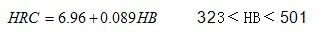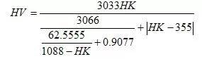 此公式換算結果與國家標準換算值對照,換算誤差為±2HV。