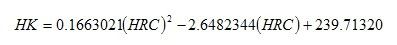 因為努氏硬度與洛氏硬度的對應曲線類似于拋物線,故由曲線得出近似的換算公式為
