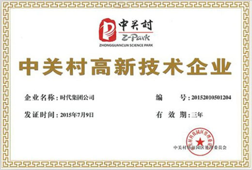 時代集團公司喜獲中關村高新技術企業(yè)認定證書