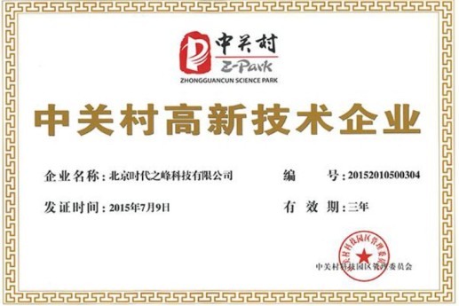 時代之峰科技有限公司喜獲中關村高新技術企業(yè)認定證書