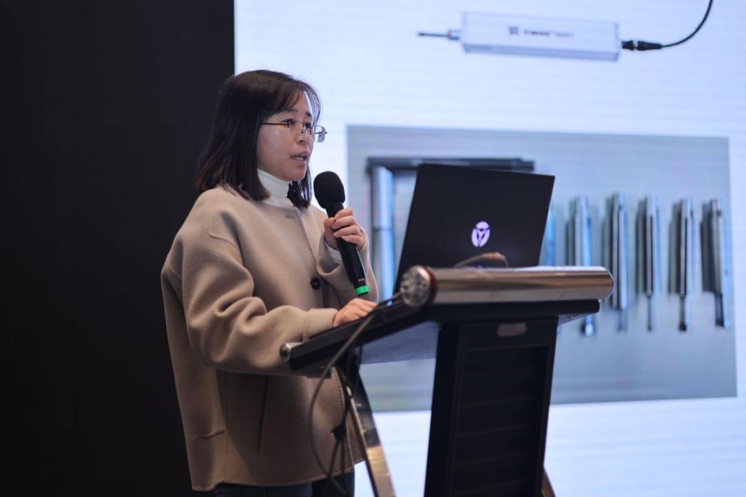 開發部王鑫部長做了粗糙度儀和超聲波硬度計應用特點的報告。結合視頻和案例,把兩個產品類型的應用場景、解決方案、產品特點、操作誤區、注意事項等做了精彩分享。
